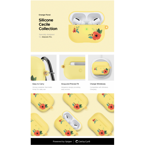 Ciel by Spigen Apple Airpods Pro Case (2019) Silicone Cecile Orange Floral