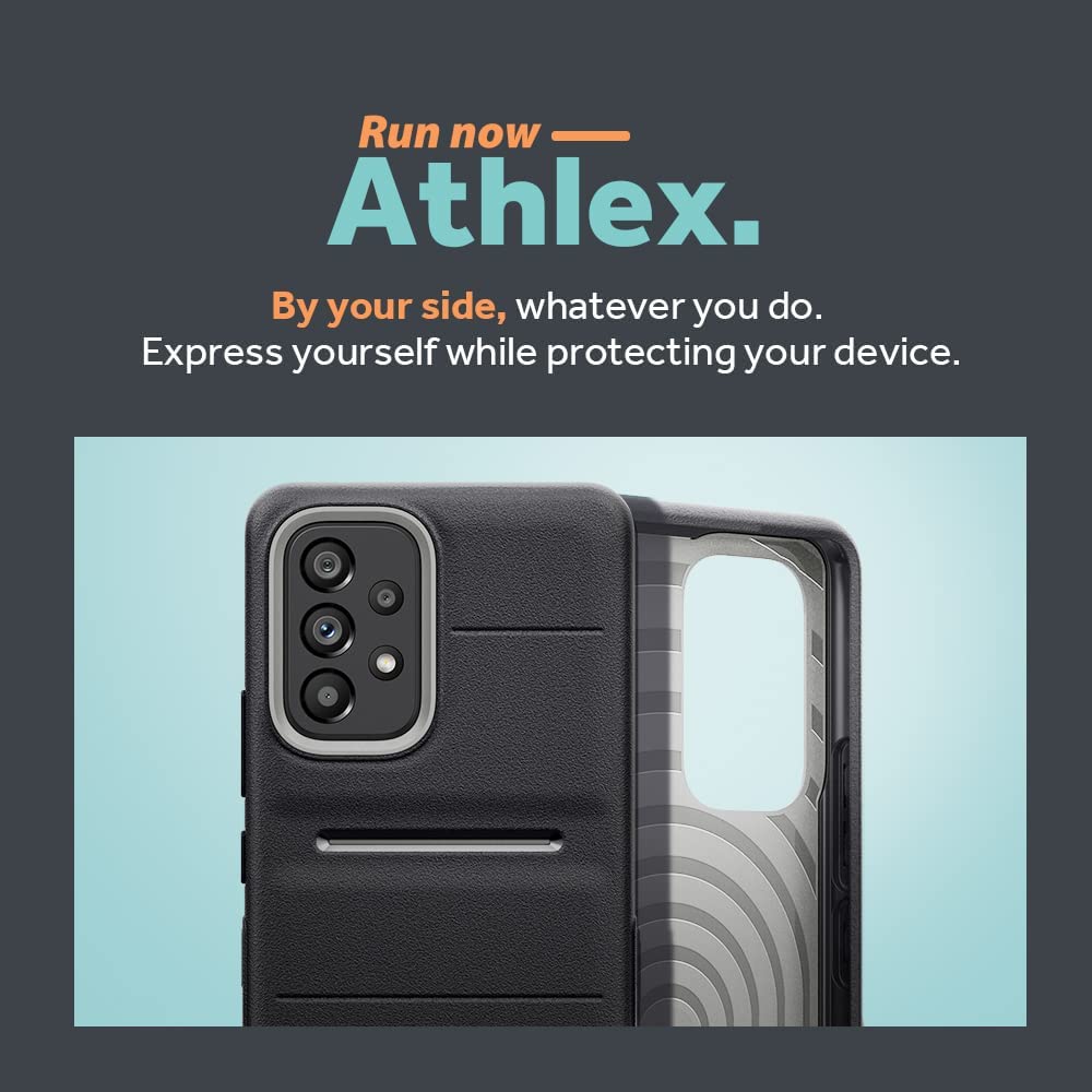Flex your Galaxy A53 fit with Athlex. Designed with athleisure in mind, Athlex is here to look effortlessly cool while staying comfy. This protective Galaxy A53 case is made of two joined layers, designed with accent lines and high contrast colors to stand out. Reliable grip on either side keeps Athlex in your hands and off the ground no matter what activity. Patented Air Space tech in each corner provides cushioning for daily drops and fumbles. You pick the pace—Athlex will keep up.