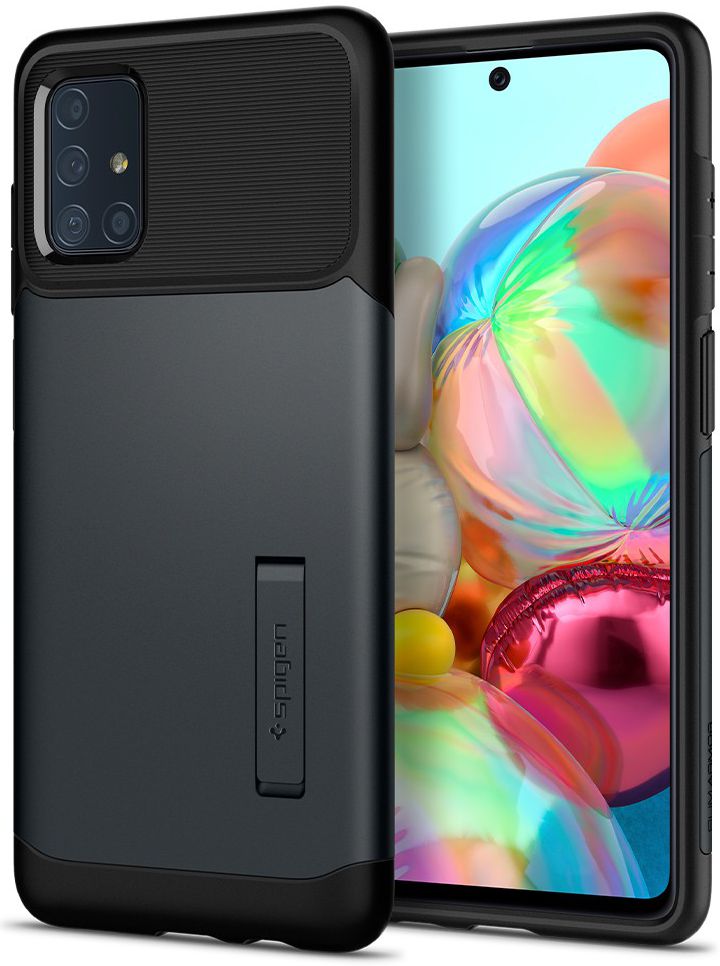 The Slim Armor case for the Samsung Galaxy A71 in metal slate has shock absorbing technology specifically incorporated to protect the device from impacts from any angle. The Slim Armor case for the Samsung Galaxy A71 has been specifically designed and crafted to offer amazing protection despite being incredibly slim and beautiful in appearance. The TPU case features improved shock absorption on the top, bottom and corners to effectively protect the Samsung Galaxy A71 against external impact.