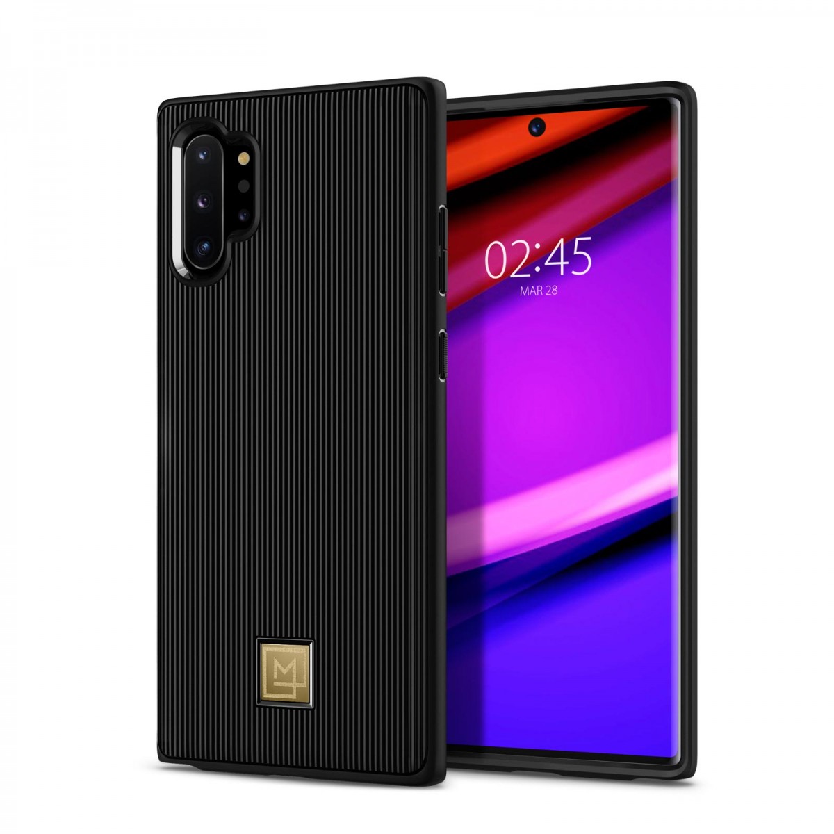 La Manon Classy Galaxy Note 10 Plus / 10 Plus 5G chic and sleek design with stripe texture and gold logo plate.