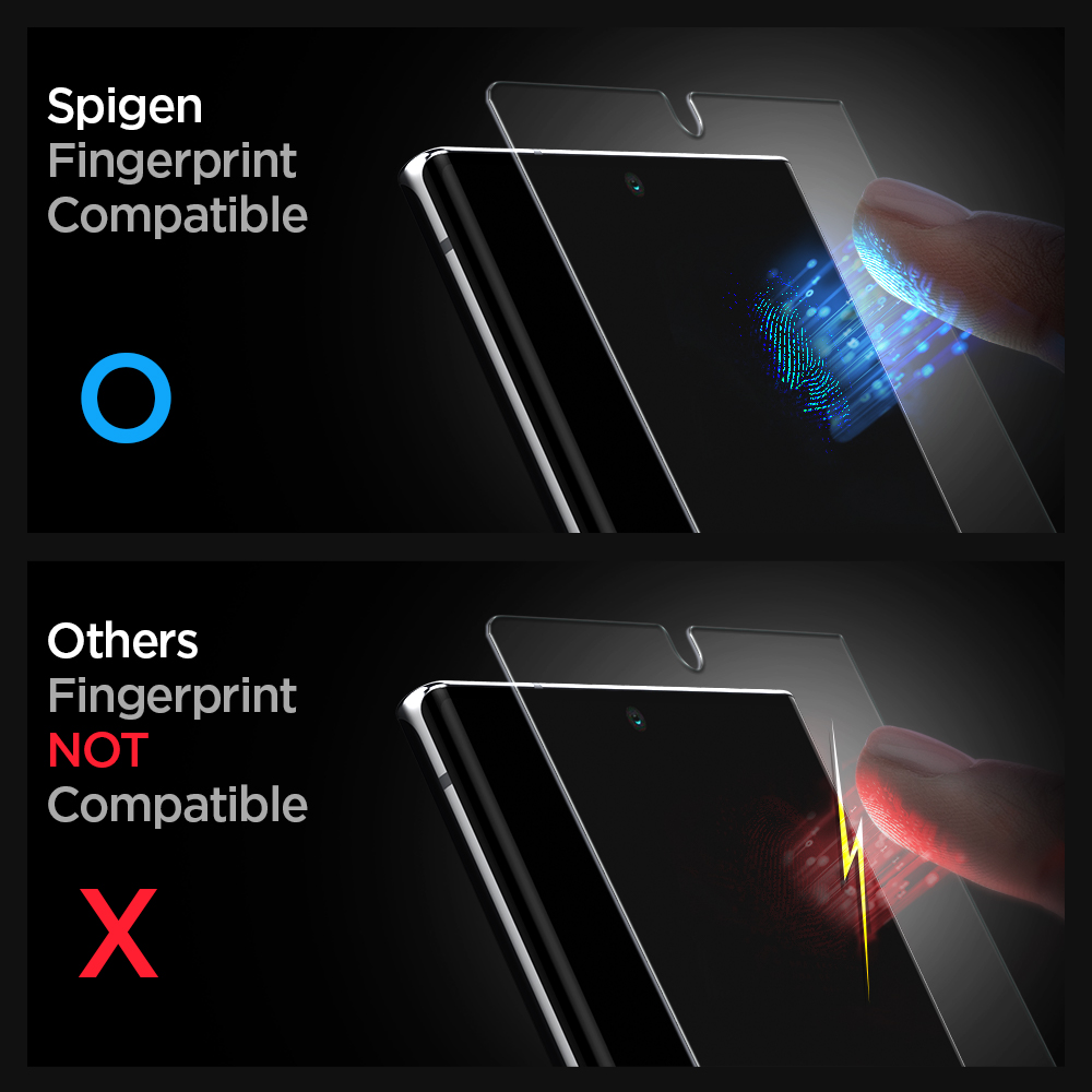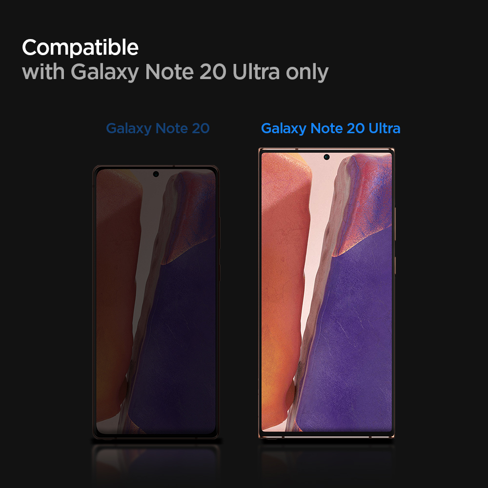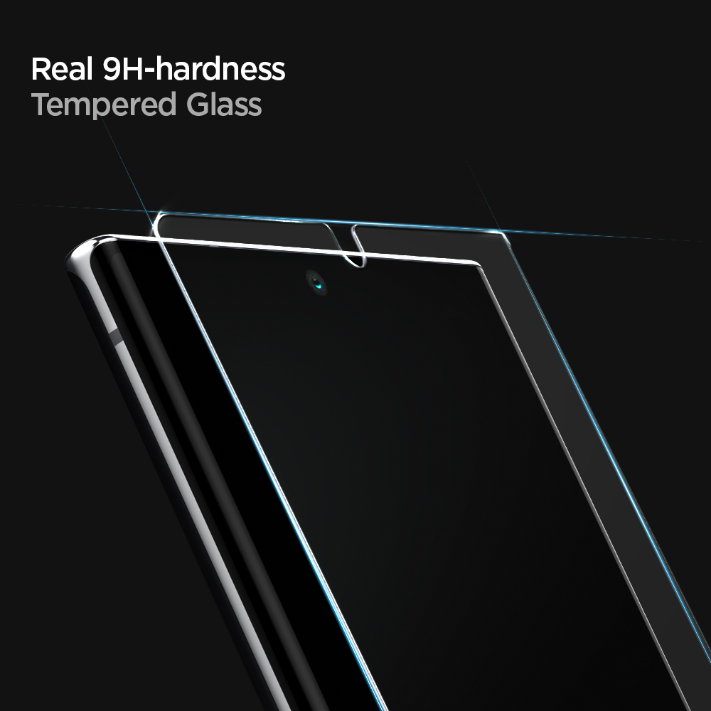 Less time, guaranteed alignment. The newest Spigen Glas.tR Platinum 2.0 for Samsung Galaxy Note 20 Ultra comes with an innovative tray designed to eliminate the time wasted to achieve the greatest alignment. Simply place the tray over the phone, press the center and watch the glass adhere in place. Shield the screen with 9H hardness Glas.tR Platinum 2.0 Fit with the latest and easiest technology.