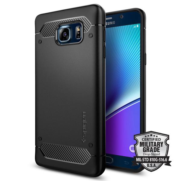 Make a statement with our Rugged Armor® case for the Galaxy Note 5. The single layered TPU case slips onto your phone with ease to defend against scratches and small drops. Its detailed rustic design has carbon fiber textures in matte black to match your life adventures.