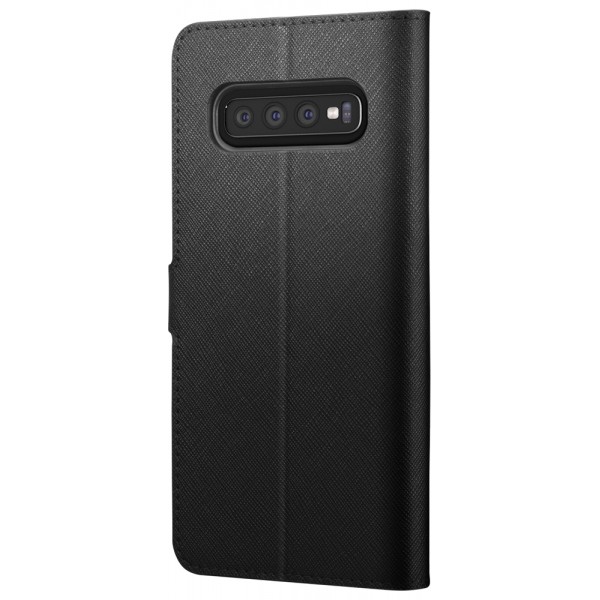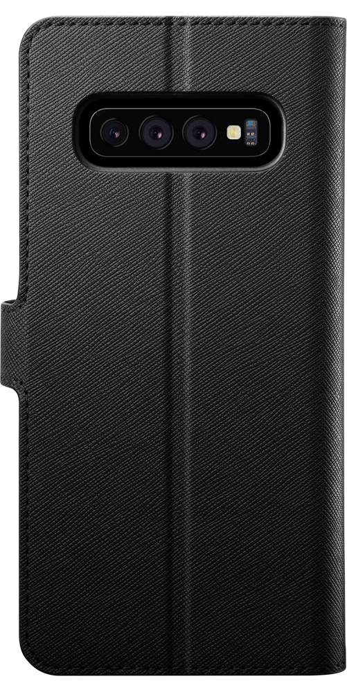 La Manon Wallet Galaxy S10 Plus chic and sleek design with stripe texture and gold logo plate. Turn the all-new Galaxy S10 Plus into a minimal wallet. La Manon Wallet stores up to two cards and cash for everyday on-the-go needs in a sophisticated frame. The foldable cover is finely stitched in synthetic leather and doubles up as a stand for effortless viewing. The cover maintains full privacy and screen coverage with secure magnetic closure. Slim down your wallet with La Manon Wallet.