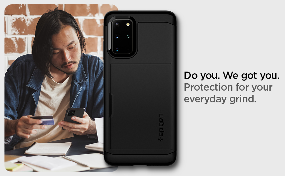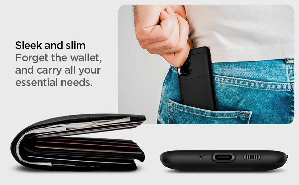 We’re basically giving your phone pockets so that your phone can keep up with you. Slim Armor CS stores all your everyday carry in nice slots while also keeping everything safe, phone included, all in a single slim frame.