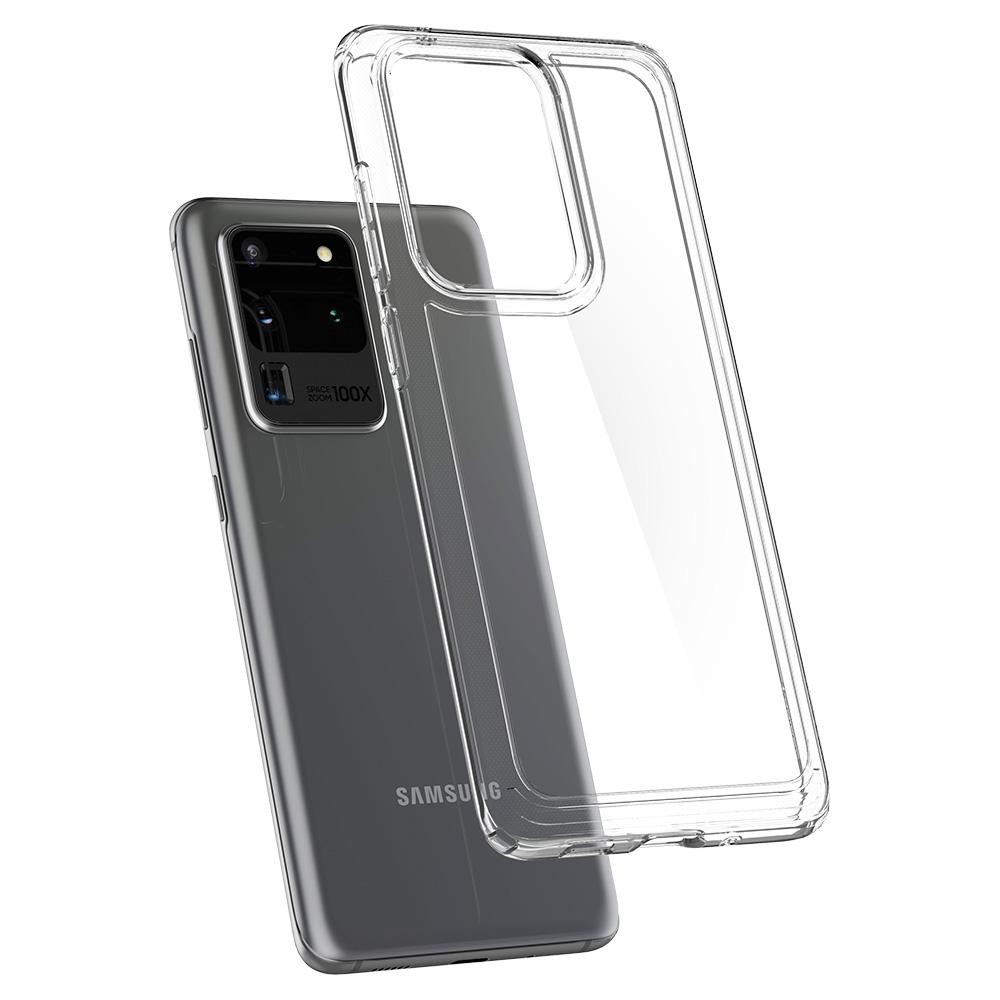Spigen Crystal Hybrid brings optimal protection with functional style. Experience maximum functionality and convenient hands-free viewing by unlocking the universal metal kickstand with one easy flick. The Crystal Hybrid is ideal for displaying your Galaxy S20 Ultra through its crystal clear PC back, and defended with dual-layered hybrid protection. The Crystal Hybrid has everything you need with practical protection, style, and functionality.
