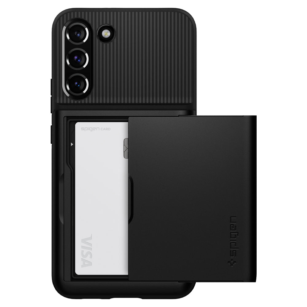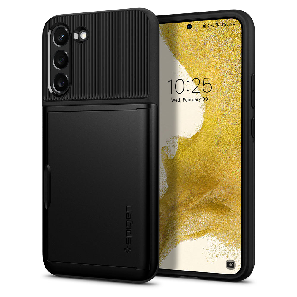 Bolstered protection meets practical storage in the Slim Armor® CS for the Galaxy S22 Plus 5G. Its dual-layer structure is designed to be pocket-friendly, with Air Cushion Technology packed into every corner for extreme defense. The back slides open for quick and easy access to cash or card storage. Even with all of the extra protection, the case remains slim and pocket-friendly. Encase your Galaxy S22 Plus 5G in the functional yet durable Slim Armor® CS.
