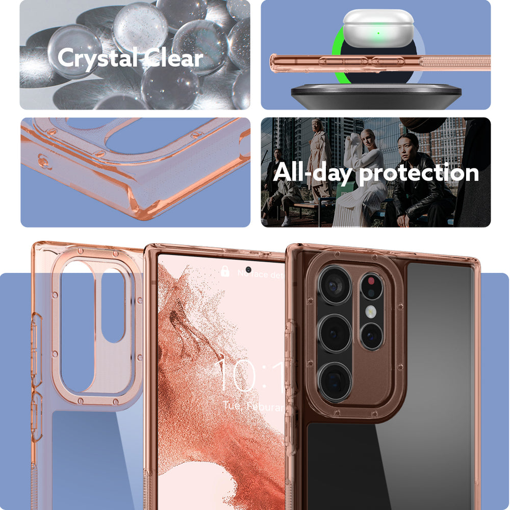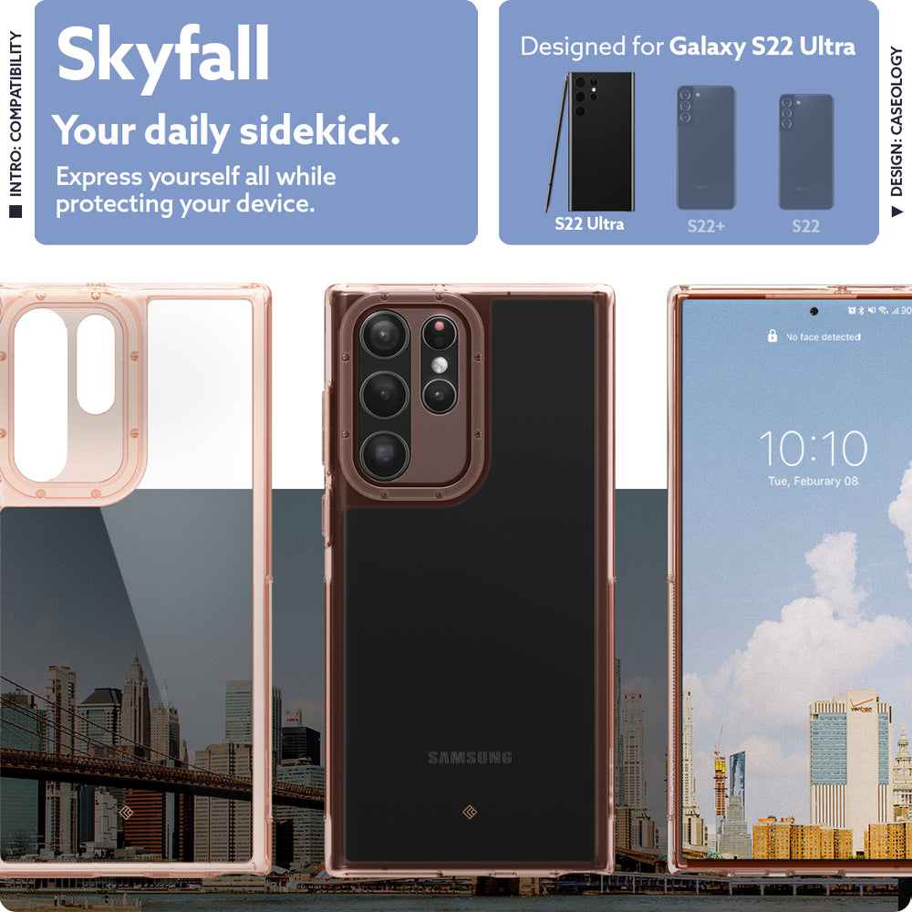 Meet the new Skyfall; ultra-slim and crystal clear with closely contoured edges designed to show off the shape of your Galaxy S22 Ultra. This hybrid layer Samsung Galaxy S22 Ultra case is created with certified military grade materials and our reinforced bumper with built in, textured TPU grip on each side ensures great grip and tough protection in a variety of hues. Protect your camera with a stylish beveled ring to keep it raised from surfaces that could scratch it. Skyfall’s slim profile is compatible with most wireless chargers.