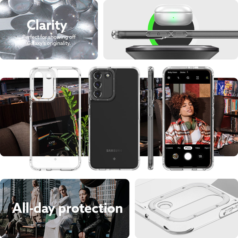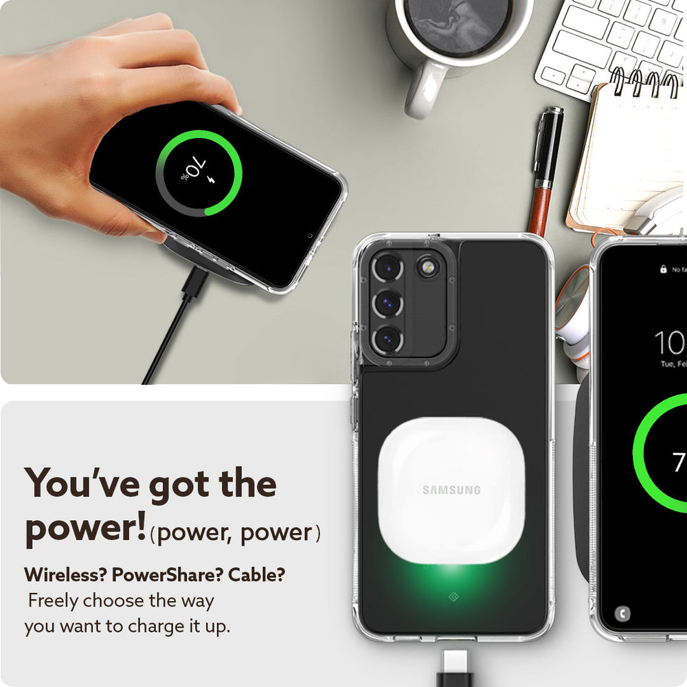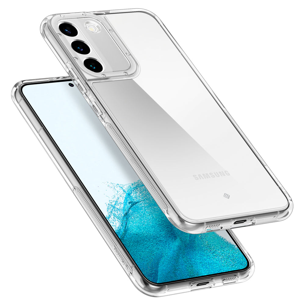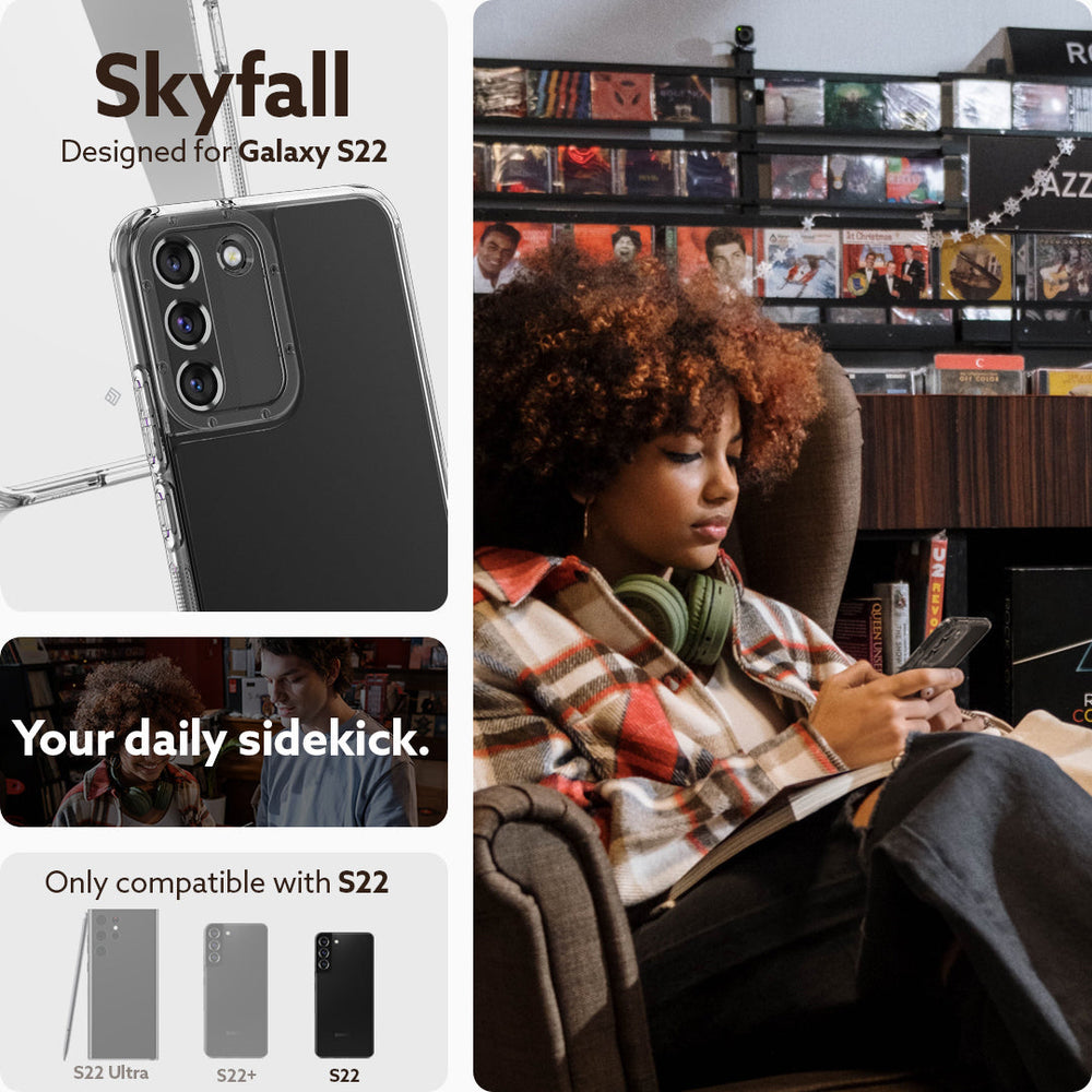 Meet the new Skyfall; ultra-slim and crystal clear with closely contoured edges designed to show off the shape of your Galaxy S22. This hybrid layer Samsung Galaxy S22 case is created with certified military grade materials and our reinforced bumper with built in, textured TPU grip on each side ensures great grip and tough protection in a variety of hues. Protect your camera with a stylish beveled ring to keep it raised from surfaces that could scratch it. Skyfall’s slim profile is compatible with most wireless chargers.