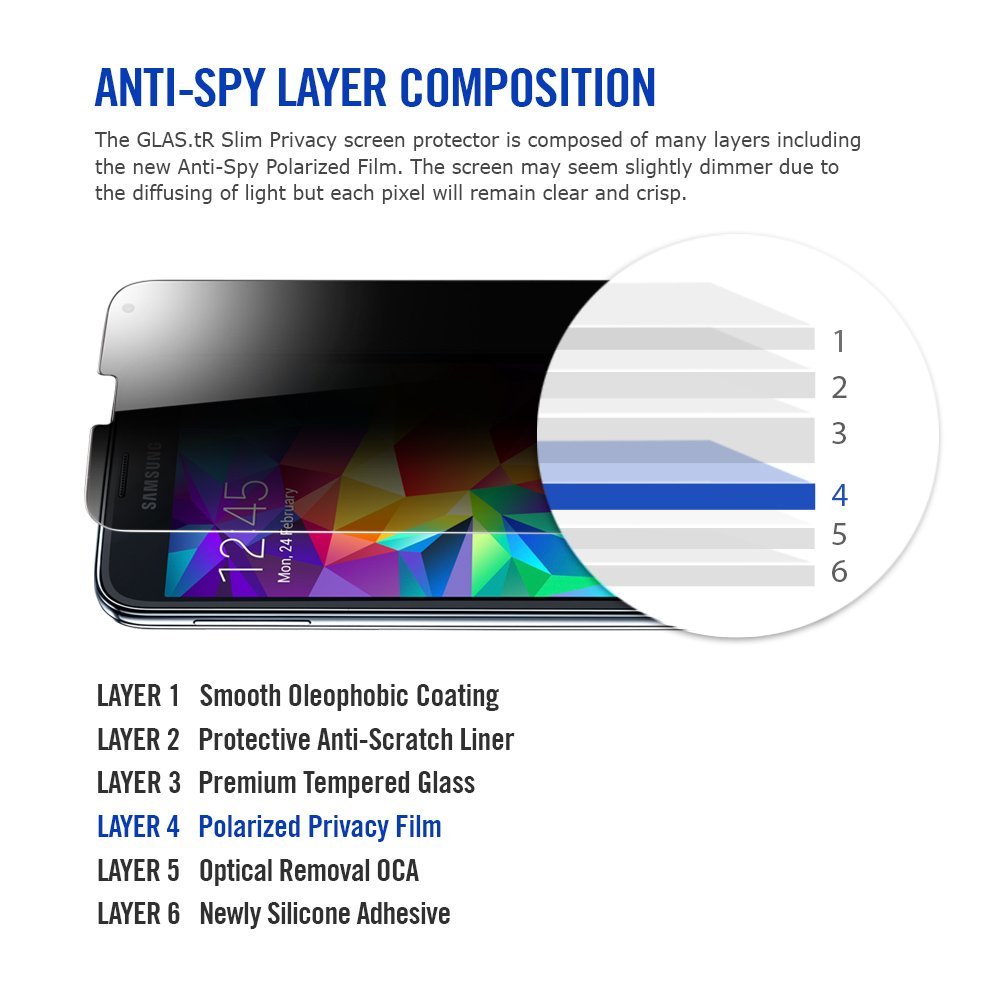 - The Spigen SGP Screen Protector Glas.tR Nano Slim Privacy offers high quality quality protection for the display of the Samsung Galaxy S5.