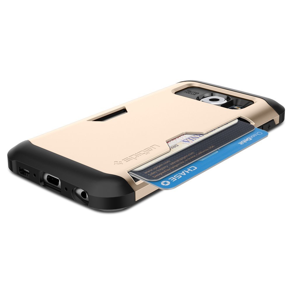 Neither style nor protection is compromised for the added convenience of our Slim Armor CS for the Galaxy S6. An integrated credit card slot securely houses up to 2 cards while staying easily accessible. The dual layered structure of quality TPU and sturdy polycarbonate provides absolute security that’s reinforced with Air Cushion Technology for added drop protection. These features and more contribute to the design of the Slim Armor, giving your device a distinct character that’s sleek and smart.