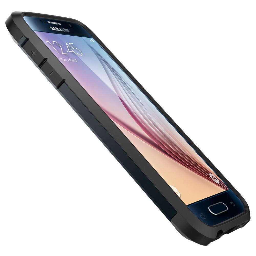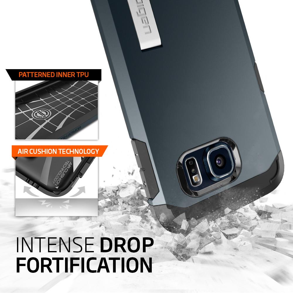 The Tough Armor® for the Galaxy S6 is the perfect combination of a TPU shell within a hard polycarbonate backing. It’s reinforced with Air Cushion® Technology for intense fortification that absorbs shock from bumps and falls without the bulk. An integrated kickstand on the back panel props your device for a comfortable hands-free viewing experience.