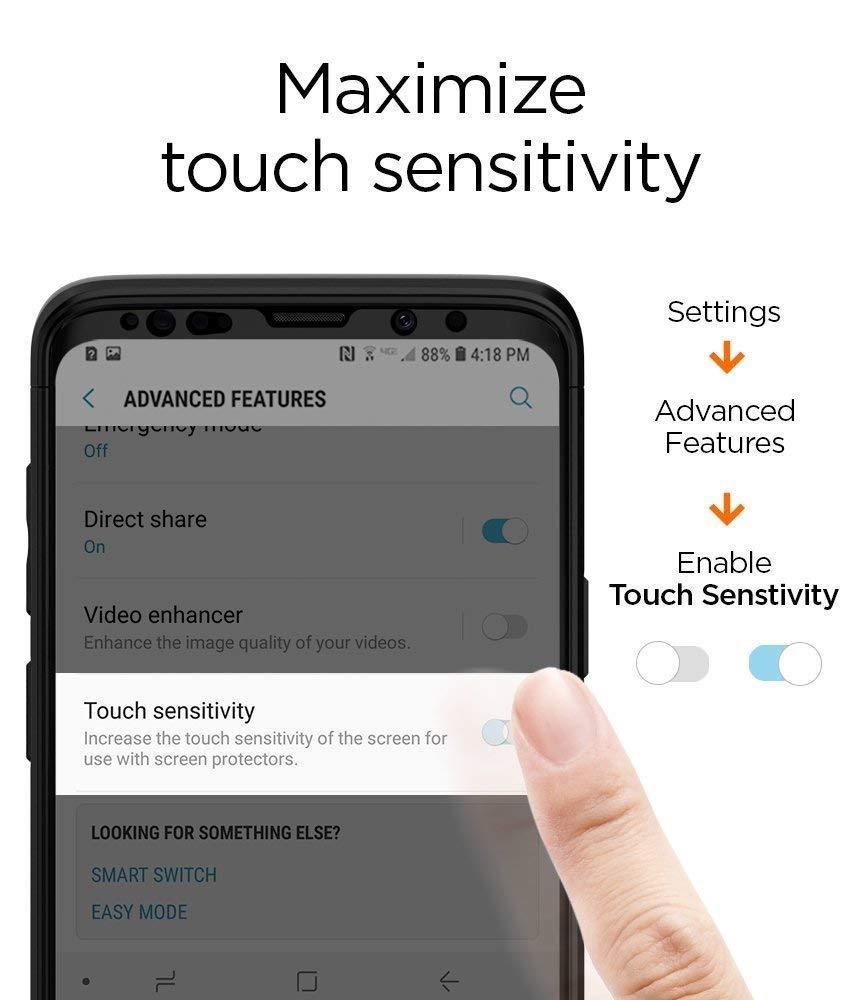 Galaxy S9 Plus Glas.tR marks a breakthrough for glass protectors that have failed to stay compatible with curved edges. The secret to its long staying power is its maximized cutout which in turn leaves more room for adhesive and coverage. The slim but powerful glass with 9H ensures the feel and look of the original glass along with seamless compatibility with all Spigen cases. Let the glass protector take the hit, not your phone.