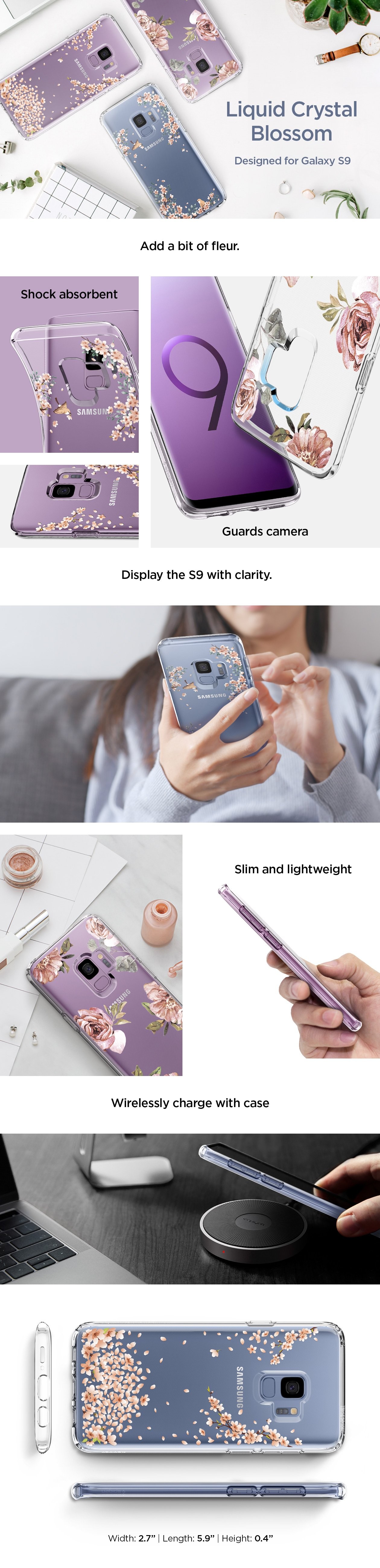 Complement the look of the all-new Samsung Galaxy S9 with a little bit of fleur. The Liquid Crystal® Blossom displays the look of the device with a touch of floral decor. An innovative dot pattern keeps the back clean and watermark-free as it leaves just enough space for device to remain untouched. All buttons and cutouts are made with precision to provide reliable response and access. Show off the new Galaxy S9 in the Liquid Crystal® Blossom.
