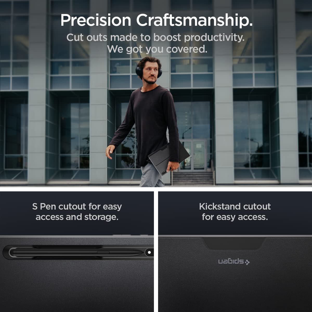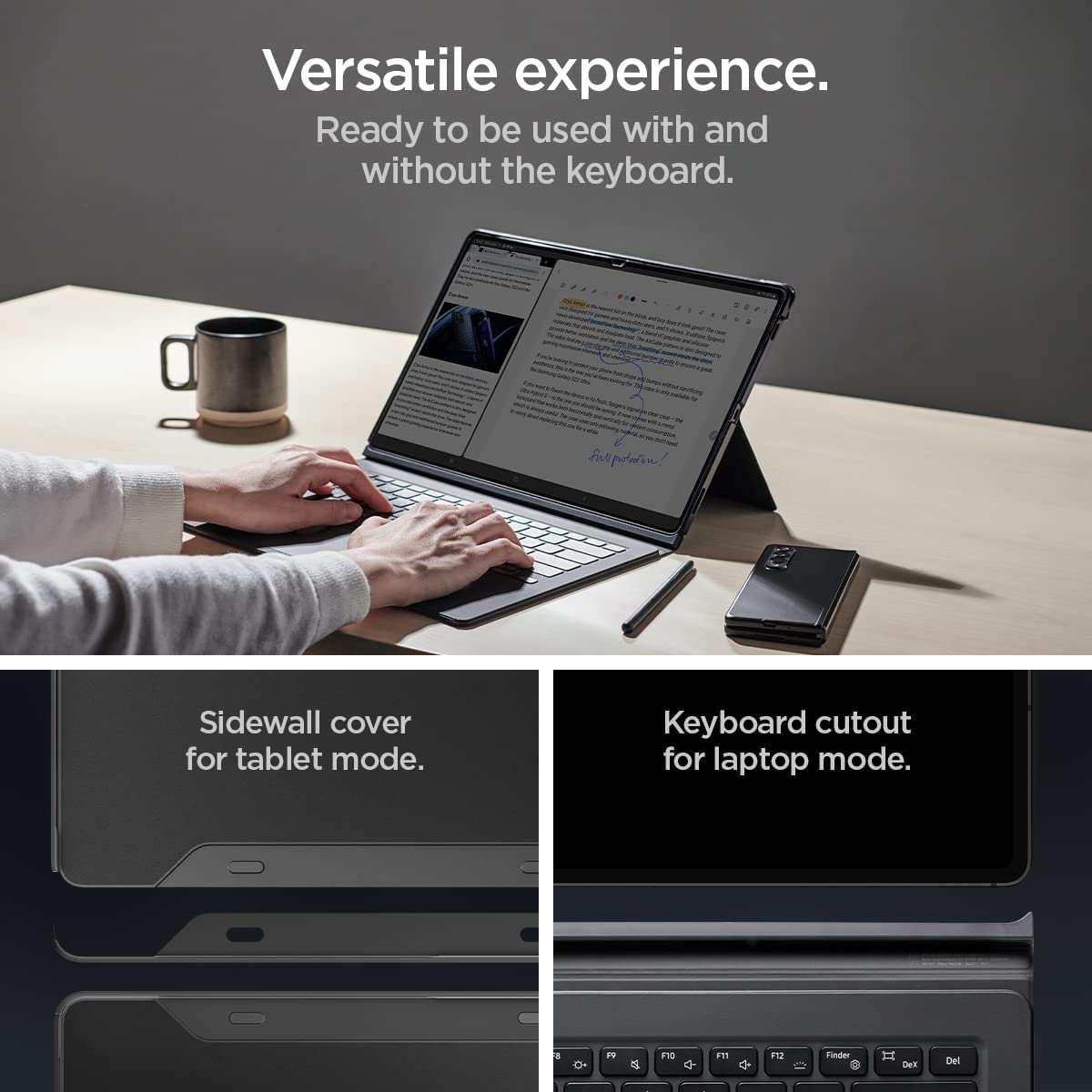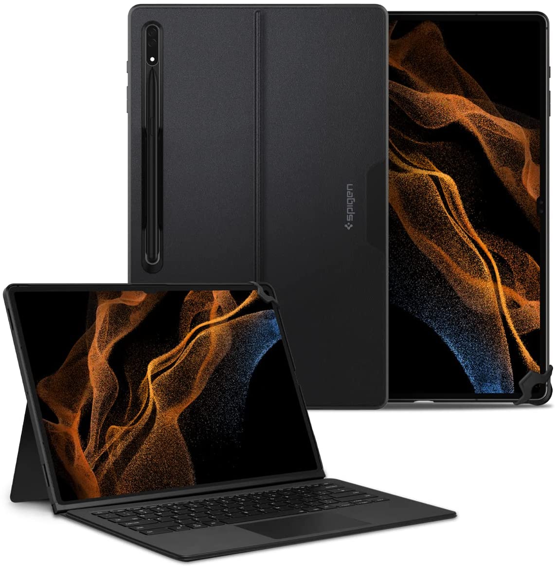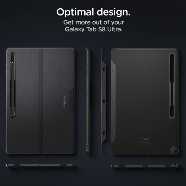 The optimal solution. Thin Fit Pro unlocks the full potential of your Galaxy Tab S8 Ultra. Its sturdy kickstand adjusts to any angle, plus its innovative S Pen integration allows for easy access. Nothing like a better workflow to boost your productivity. Compatible with Samsung Galaxy Tab S8 Ultra Book Cover Keyboard Attachable side protection only for tablet mode.