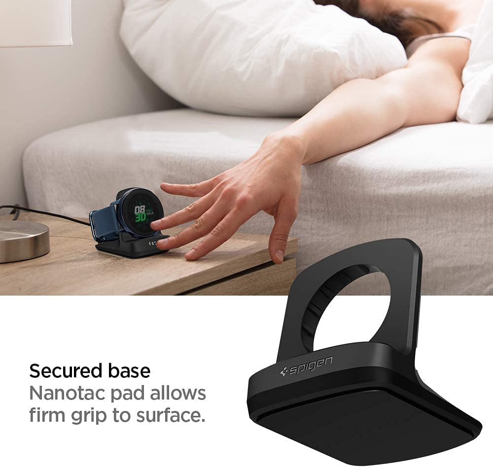 Spigen’s Night Stand for the Galaxy Watch Active 2 & 1 (40/44mm) is made entirely of scratch-free TPU for minimal aesthetics packed with smart functionality. It features a bottom lip that cradles your watch on its side for stability that prevents your watch from swaying side to side. An exact charger cutout offers form-fitting precision that keeps things simple and easy to use.