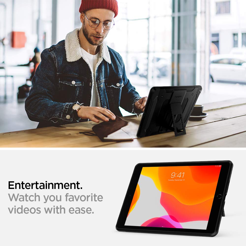 Introducing the full cover case for the iPad 10.2". Tough Armor TECH features dual-layered protection ultimate impact-resistance to complete everyday needs. All cutouts remain precisely carved to ensure quick access while a built-in kickstand allows hour-less viewing in two different settings.