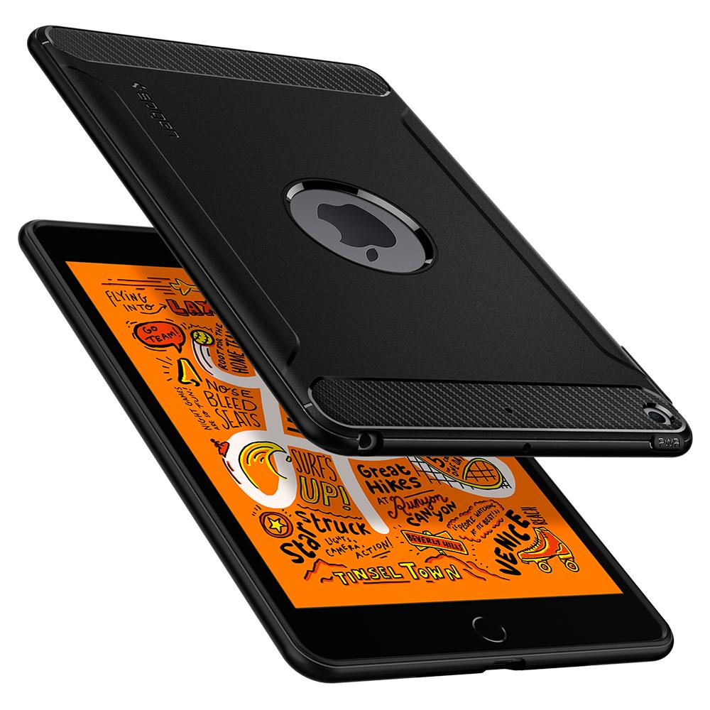 Rugged Armor® packs style and protection in a simple layer. Its lightweight frame ensures the defense of the iPad Mini 5 with shock-absorption Air Cushion Technology provides. Every inch of the build reflects a signature yet timeless look with a matte black finish and carbon fiber detailing. Maintain the feel of the iPad Mini 5 with unrivaled defense and look with Spigen Rugged Armor®.
