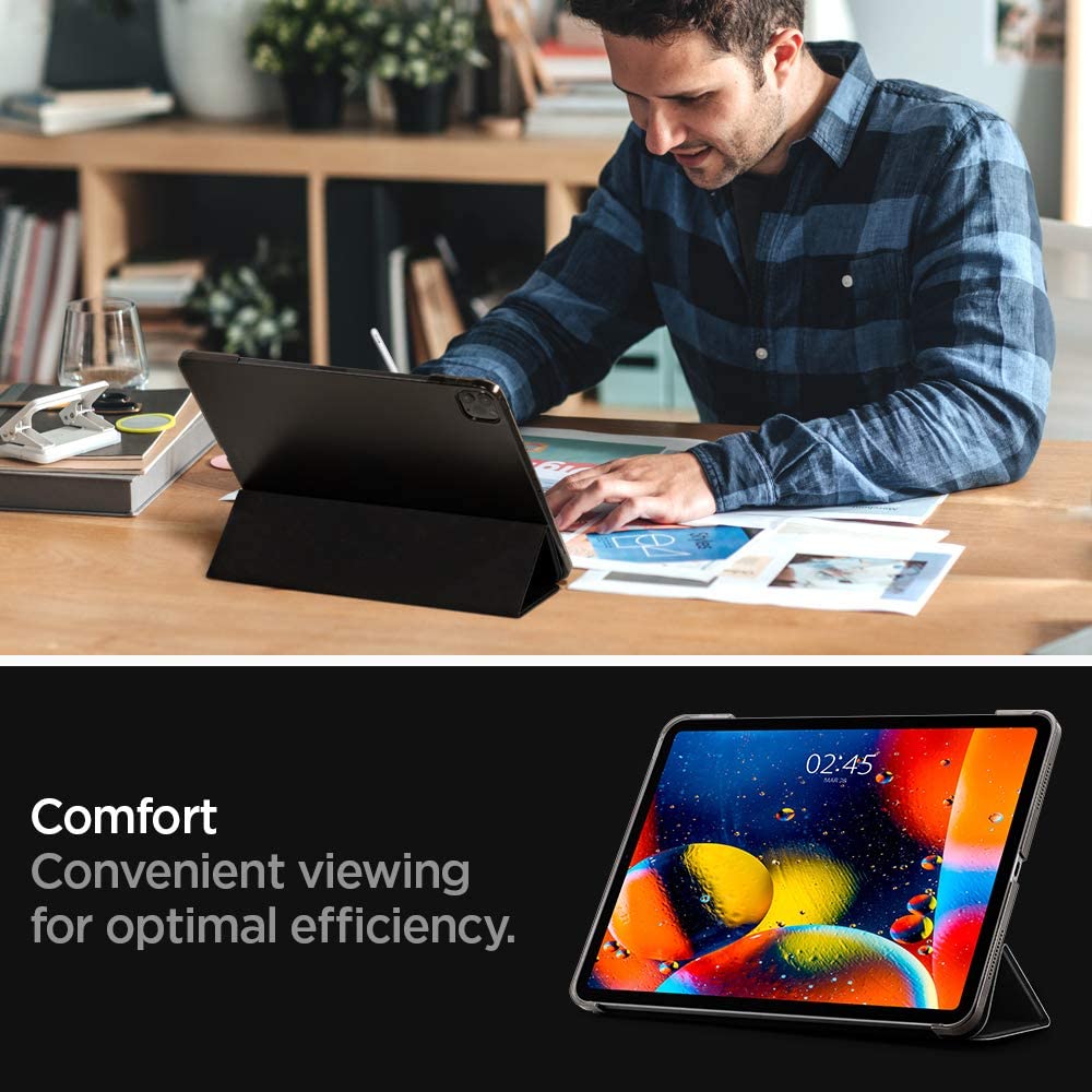 Elevate the experience with the Smart Fold® that covers your brand-new iPad Pro in a pleather look and really easy to carry. Fold back the cover and convert any space either to an easy workstation or to catch up on all your latest shows. Always work smart.