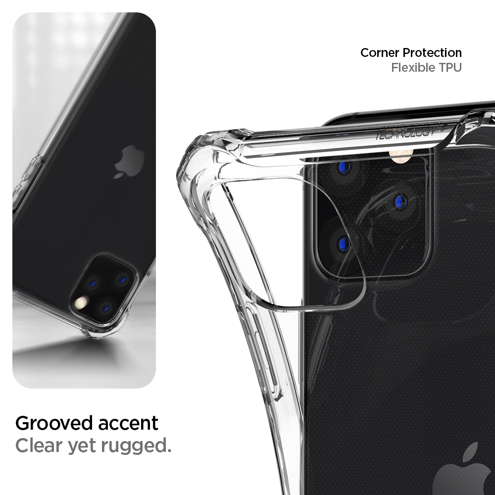 Where clear finally meets design. The latest Rugged Crystal™ comes streamlined while preserving clarity with the classic TPU makeup. The inside contains an innovative dot pattern to keep the phone showcases as is with zero watermarks. Air Cushion® Technology guards every corner from impact while raised edges keep the screen and camera contact-free. Display the new iPhone 11 with an edge with Rugged Crystal™.