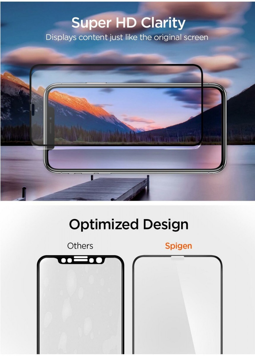 Protect the entire iPhone 11 Pro Max display with top-notch quality using our Full Cover tempered glass screen protector. It offers full coverage of the front screen with a colored frame that mimics the original iPhone 11 Pro Max design. The rounded edges offer comfort in the hand and compatibility with Spigen cases.