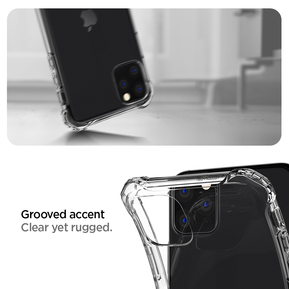 Where clear finally meets design. The latest Rugged Crystal™ comes streamlined while preserving clarity with the classic TPU makeup. The inside contains an innovative dot pattern to keep the phone showcases as is with zero watermarks. Air Cushion® Technology guards every corner from impact while raised edges keep the screen and camera contact-free. Display the new iPhone 11 with an edge with Rugged Crystal™.