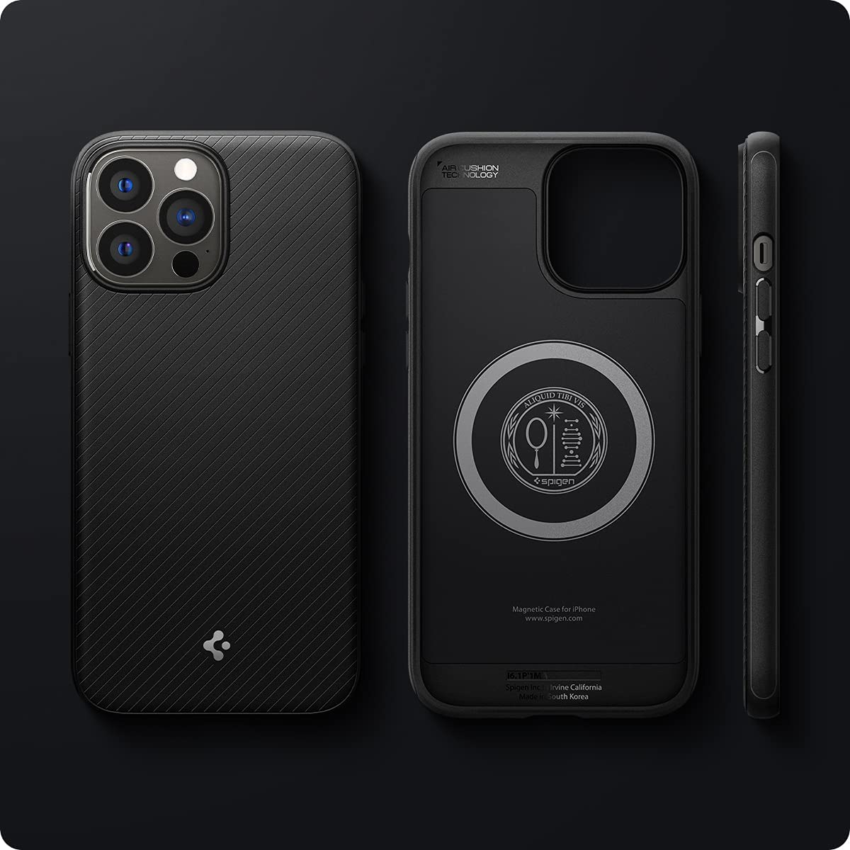 Original case from the Spigen brand from the Core Armor Mag series . Made of high-quality, soft thermoplastic polyurethane, it provides protection and a good grip. Minimalistic and tasteful design, no unnecessary additions. Thanks to the built-in magnetic ring, the case is compatible with accessories from the Apple MagSafe series .