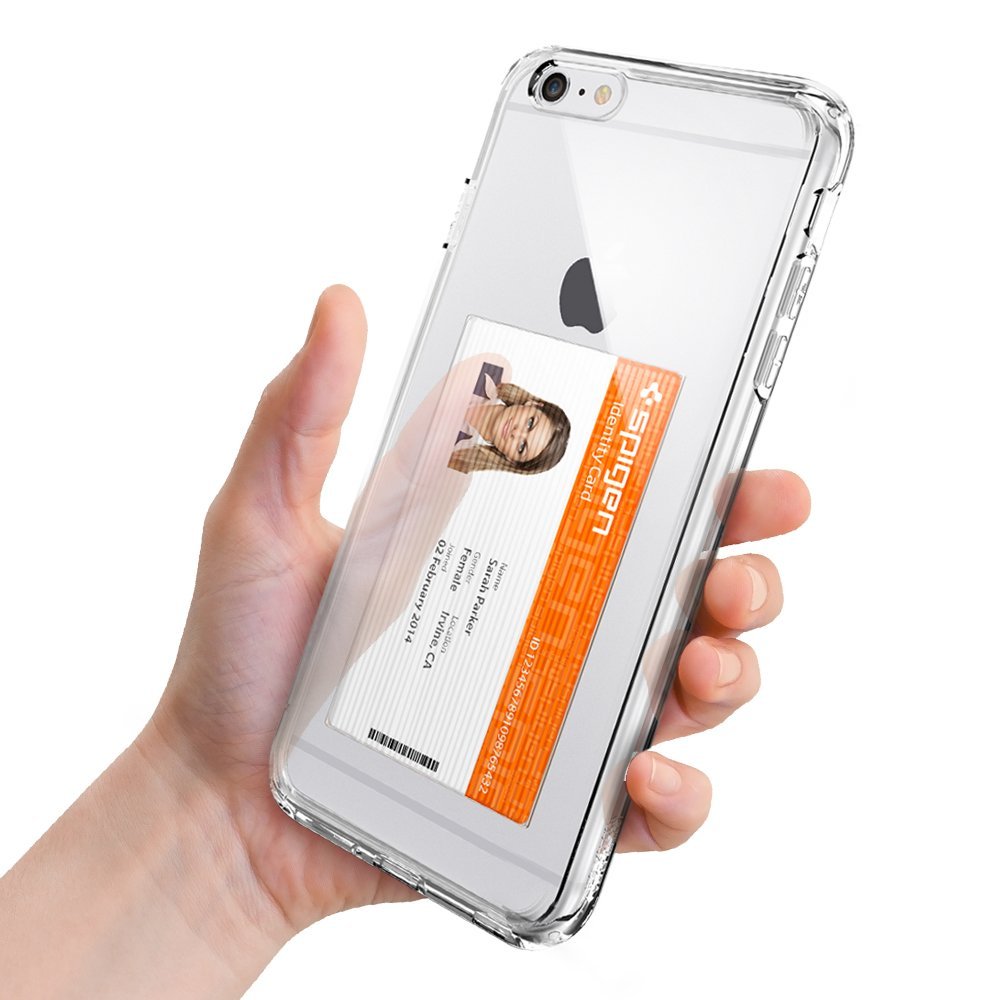 - The clear back panel features a card compartment for a Driver License or ID
