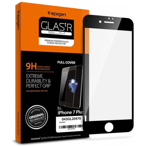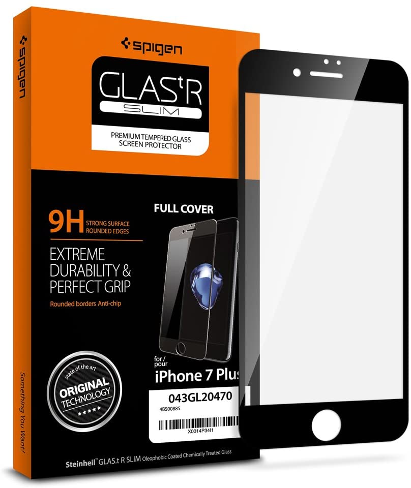 Protect the entire iPhone 7 Plus display with top-notch quality using our Full Cover GLAS tempered glass screen protector. It offers full coverage of the front screen with a colored frame that mimics the original iPhone 7 Plus design. The rounded edges offer comfort in the hand and compatibility with Spigen cases.