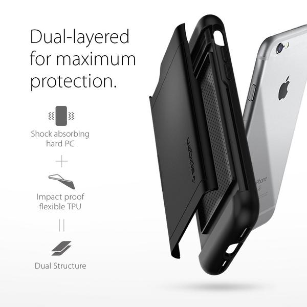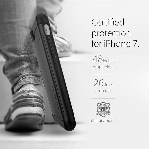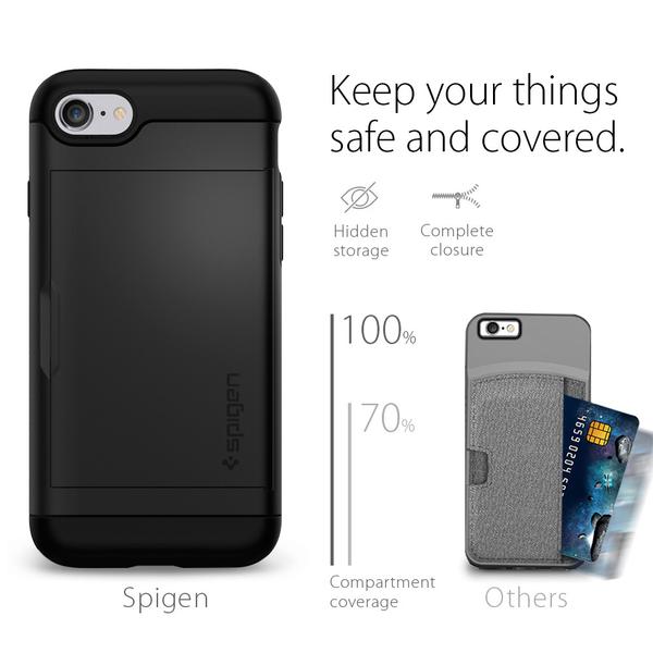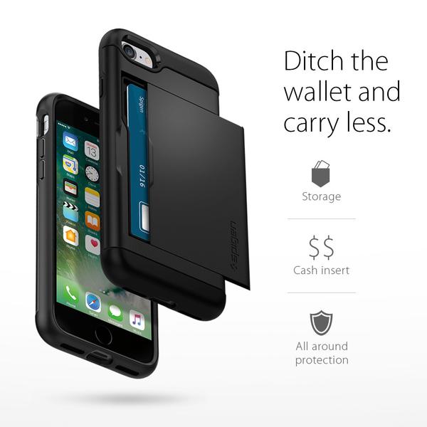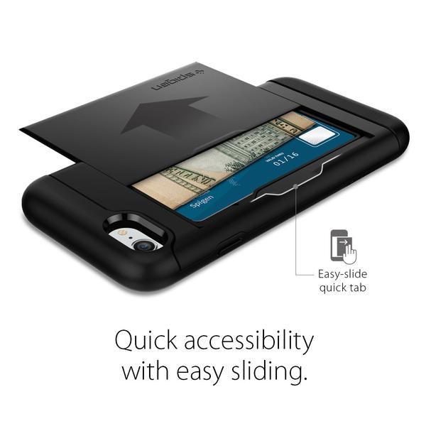 Tired of carrying both your phone and wallet? Simplify your shopping essentials with Spigen’s Slim Armor CS without sacrificing an ounce of protection and style. Spigen Slim Armor seamlessly holds up to two cards, sealed by a conveniently sliding cover. The cover also functions as a shelter for cards and cash to be out of sight while other card-holding cases suffer from open security issues. Its dual-layered casing shields your brand new iPhone SE 3 (2022)/ iPhone SE 2 (2020)/ iPhone 8 (2017)/ iPhone 7 (2016) all around - all corners with Air Cushion technology and the rest with its invincible armor.