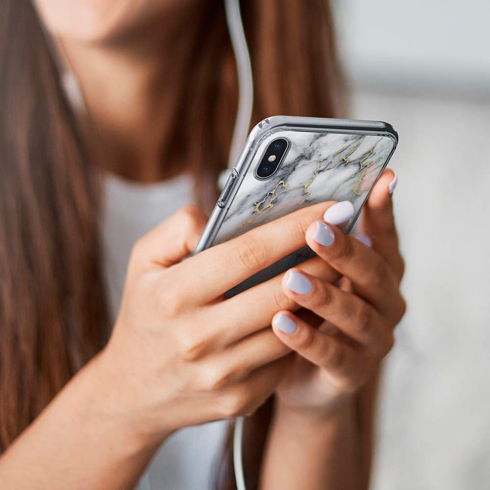 • Glossy marble hard PC case and TPU bumper offer comfortable grip and a slim profile