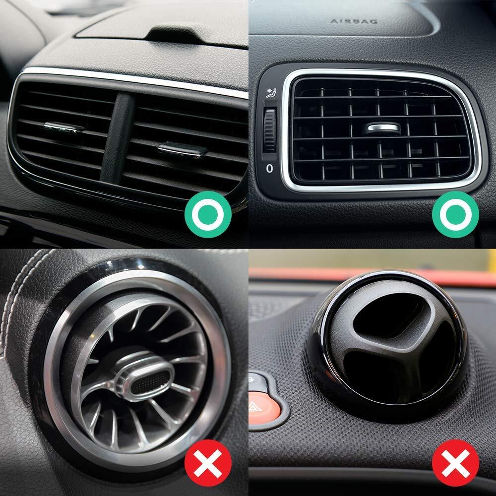 - [Air Vent Holder]Simply situate the mount on your air vent for strong holding (For horizontal air vents, please install the product at the very bottom of the vent)