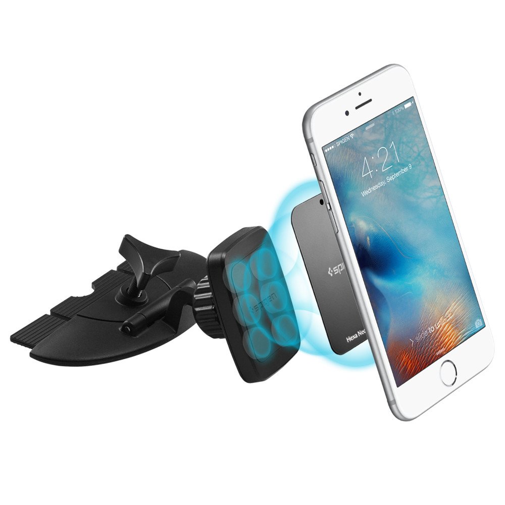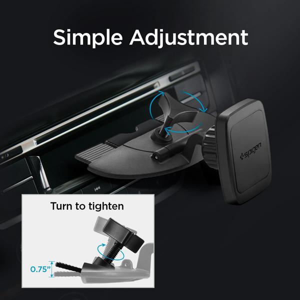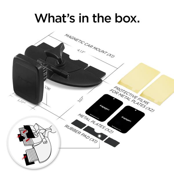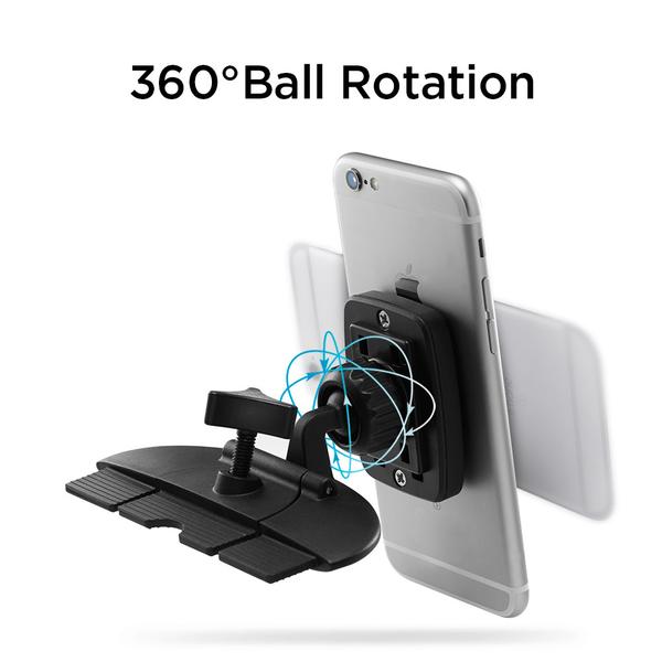 The Spigen CD Slot Car Mount securely fits into any car's universal CD-slot. It also allows for easy accessibility for hands-free use while driving. The adjustable ball head swivels around for almost any user-friendly angle and the magnetic pad makes mounting, removal, and repositioning your device incredibly simple. Make driving safe and enjoyable again with Spigen CD Slot Car Mount!