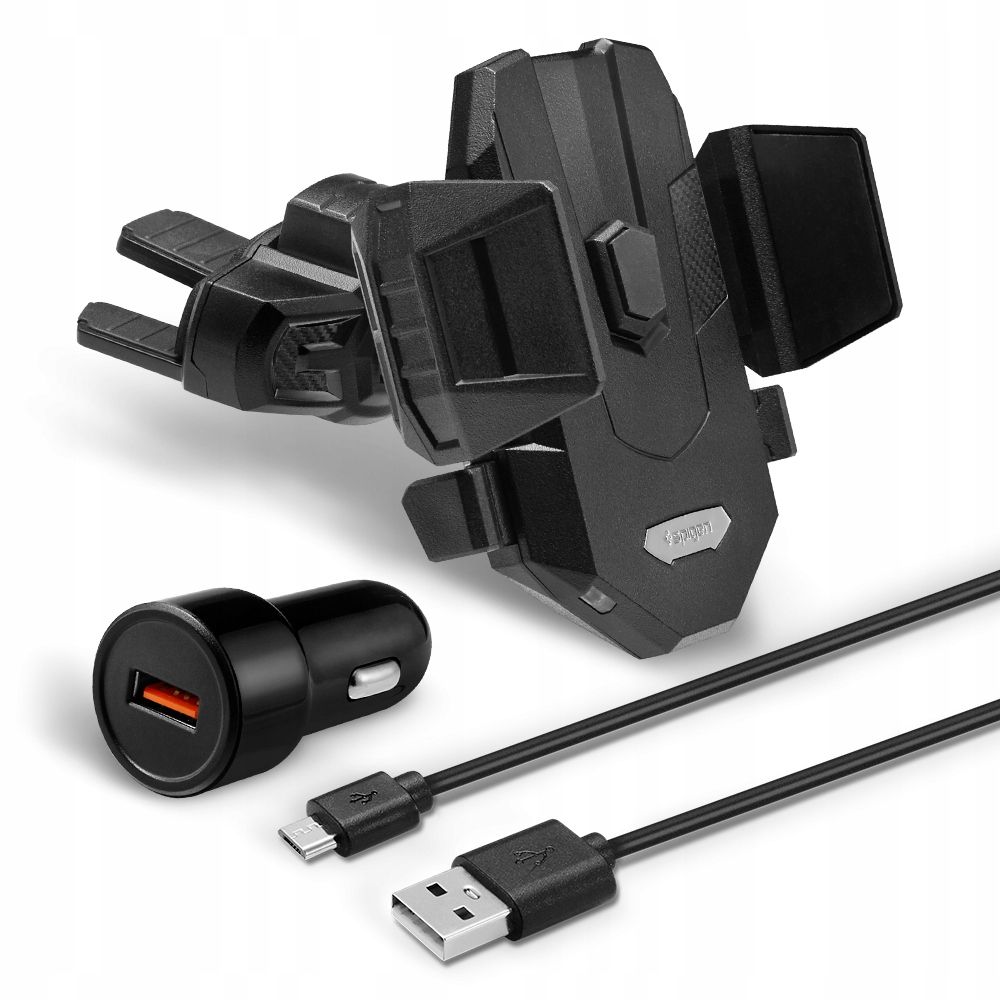 Spigen X35W is a car holder with induction charging for CD input in our car the holder is compact and ensures safe and universal assembly of the telephone via automatic clamps - the telephone is installed by pressing the telephone against the holder. Thanks to the rotary head, we have 360 degrees of freedom in the position of the phone. Spigen X35W has the ability to induction charging up to 10W. A suitable car charger is included in the set with a cable.
