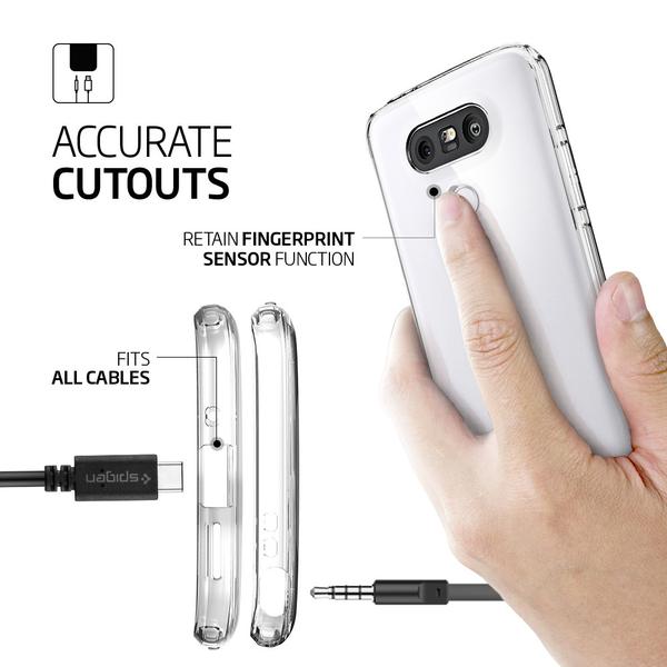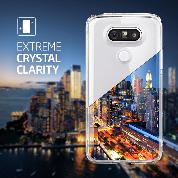 Spigen’s Ultra Hybrid™ case allows you to exhibit the craftsmanship of your new LG G5 while maintaining proper protection. The perfect fusion of clear polycarbonate backing and a wrap-around TPU bumper safeguards your device against bumps and scratches while providing you with a secured grip.