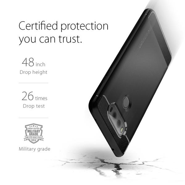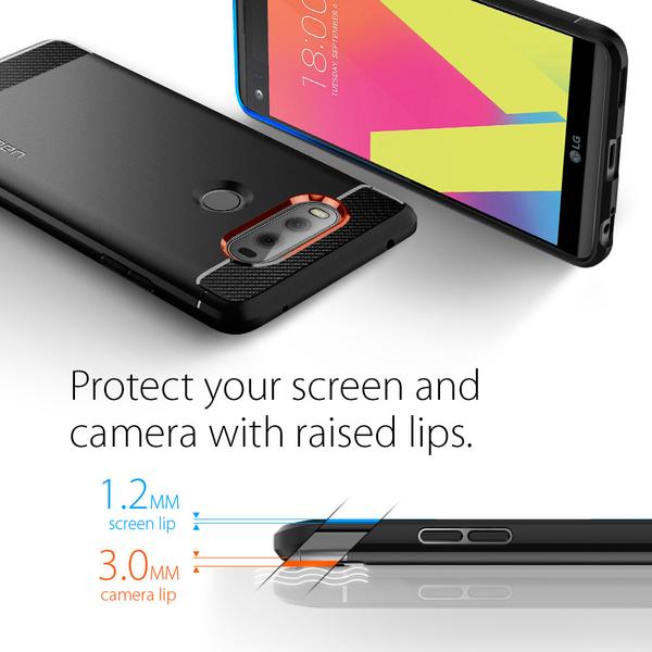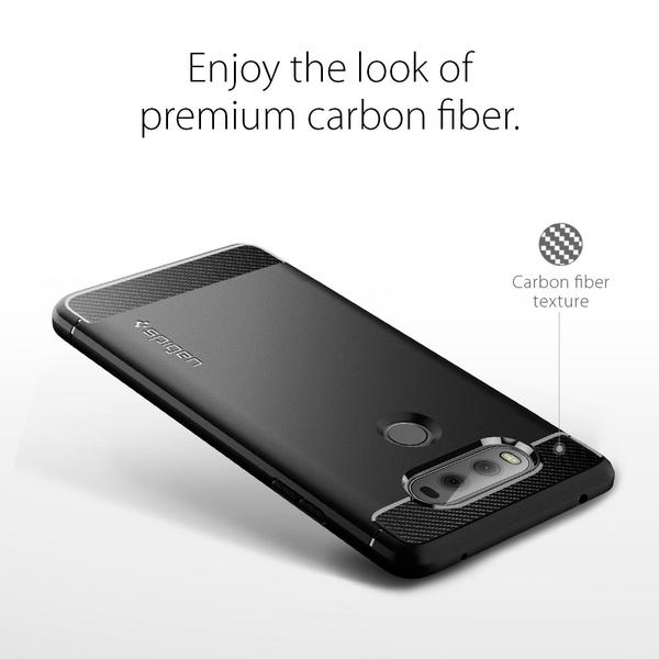Want a single layer protection with extreme style? The Rugged Armor is exclusively crafted with a sleek black TPU shell with textured carbon fiber accents. This guarantees not only a premium look with protection but a bang for your buck. Our newly designed Rugged Armor for LG V20 comes specially with a beveled, circular opening for quick fingerprint scans. The inside of the case is lined with our spiderweb pattern and Air Cushion Technology on all corners to assure shock-absorption in every impact. Stay simple and stylish with Rugged Armor!