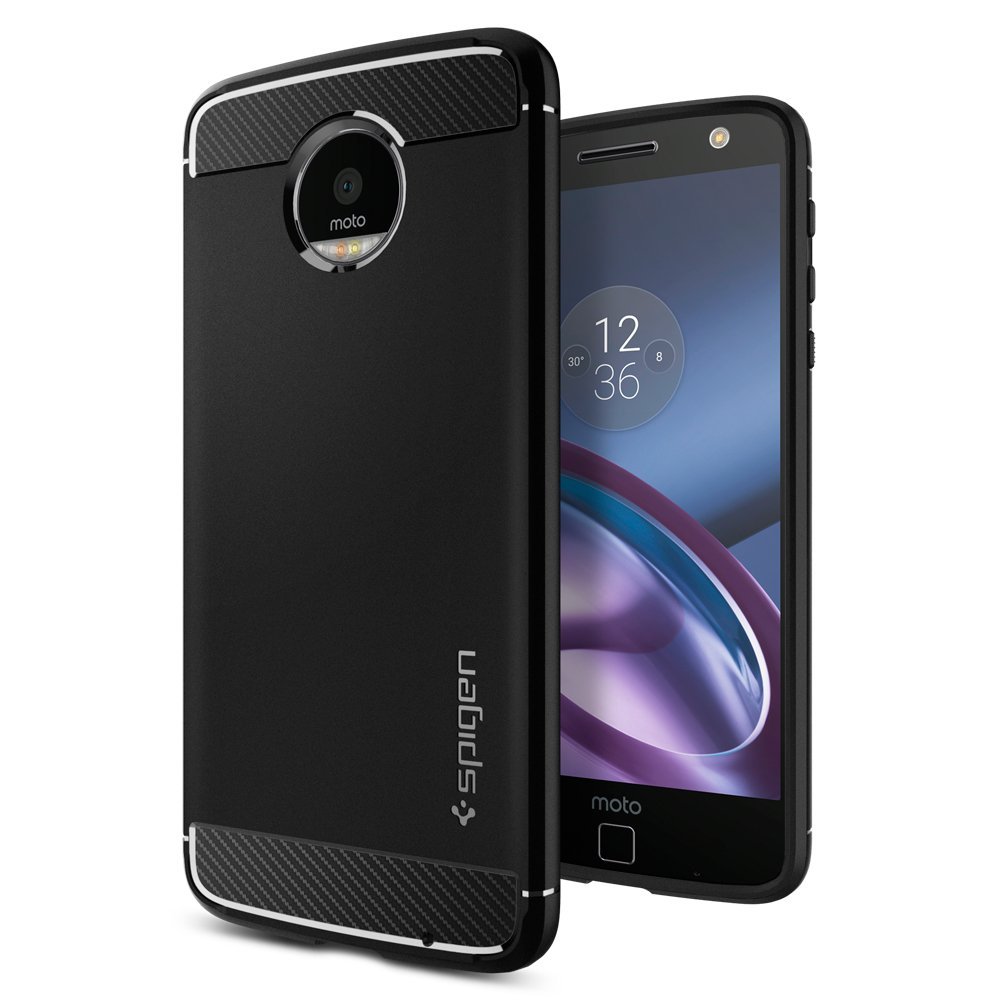 Spigen’s newly designed Rugged Armor™ Case for Moto Z Droid is a certified military grade drop tested case with a single flexible TPU casing. Its soft carbon fiber texture makes it easy to put on while protecting your device from drops and scratches. Made with carbon fiber texture and glossy line accents, this rugged design that will compliment any style.