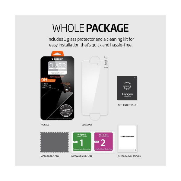 The GLAS.tR SLIM™ tempered glass screen protector for the Nexus 6P is more than meets the eye. The rounded edges offer comfort in the hand and compatibility with Spigen cases with exact cutouts for phone functions to give you clear protection that maintains the original touchscreen experience.