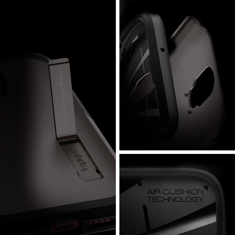 Bigger, better protection. A Spigen classic and fan fave, the Tough Armor embodies protection with style, just minus the bulk. Its dual structure combines the nature of two strong components - durable and shock-absorbent - for utmost drop protection. Cutouts and buttons are made with precision for quick access with strategically raised edges to leave screen and camera contact-free.