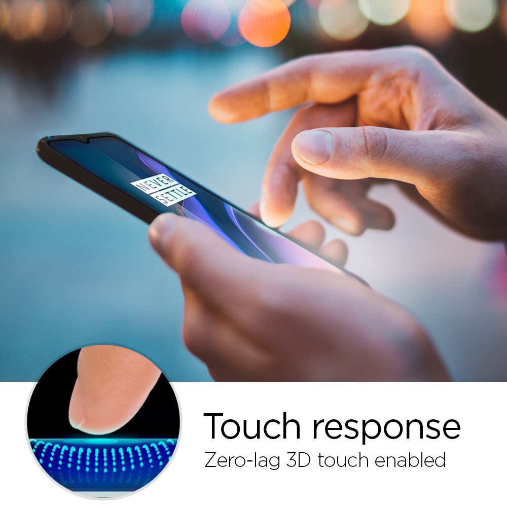 Guard the screen of the OnePlus 6T with 9H tempered glass for defense against scratches and protection against impacts. Not only does it remain crystal-clear, but it also stays touch responsive. Curved edges for ensure complete coverage of the OnePlus 6T, while the glass is precisely fitted to ensure complete compatibility with all Spigen cases. Give your device the protection it deserves with the Glas.tR Curved™ HD.