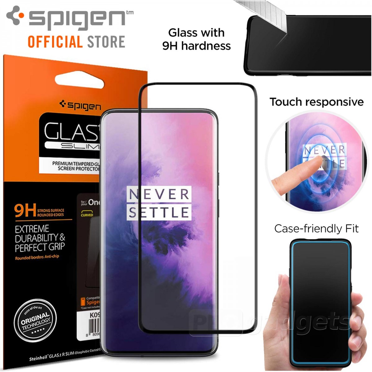 Guard the screen of the OnePlus 7 Pro with 9H tempered glass for defense against scratches and protection against impacts. Not only does it remain crystal-clear, but it also stays touch responsive. Curved edges for ensure complete coverage of the OnePlus 7 Pro, while the glass is precisely fitted to ensure complete compatibility with all Spigen cases. Give your device the protection it deserves with the Glas.tR Curved™ HD.