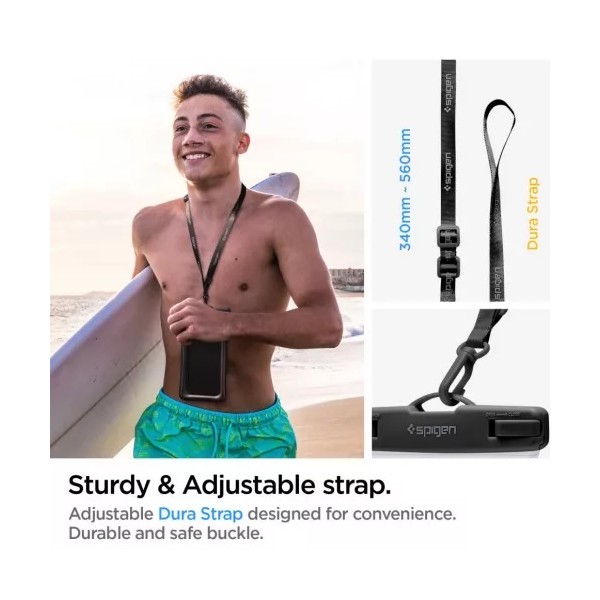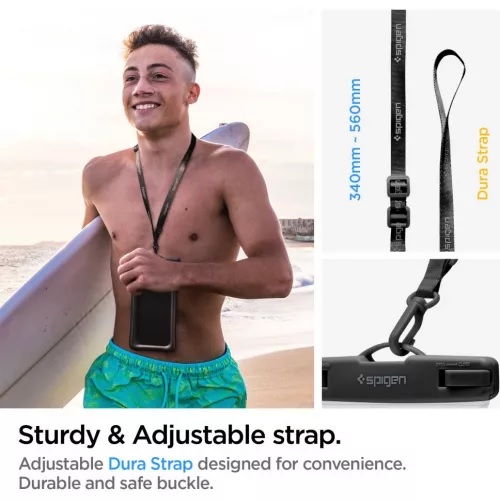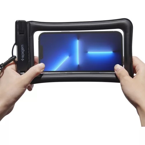 Universal waterproof protective case for most mobile devices up to 8.2 inches - with a display up to 6.9 inchesThe design of the Spigen A610 cover is perfect for unusual situations such as diving or swimming. The air-filled edges make the case easily float on the water, minimizing the risk of getting lost.