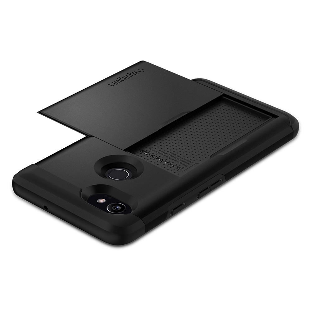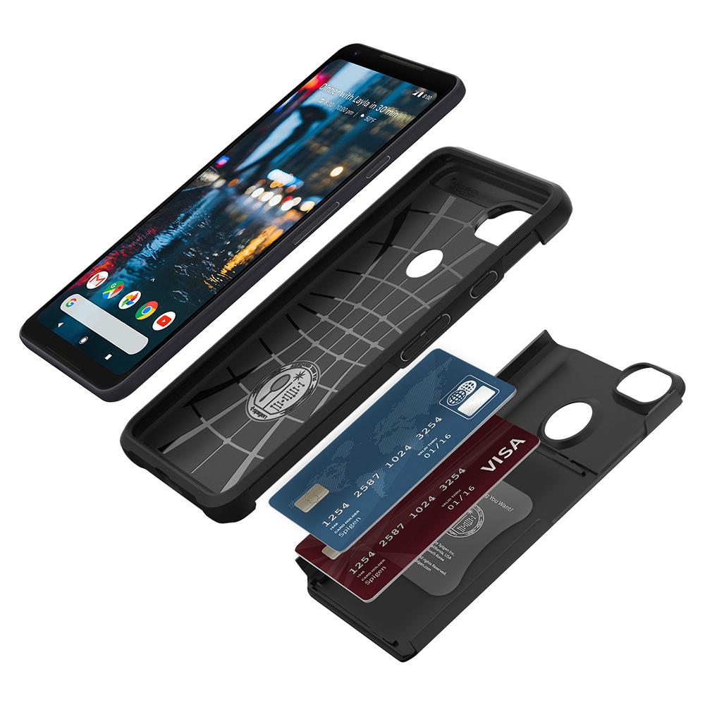 Ultimate protection with optimum functionality. The Slim Armor CS™ comes dual-layered with a built-in card storage for added convenience. With sliding technology, the cover provides a secure closure to fight off open security issues while the back comes with an ergonomic cutout that allows easy reach for quick fingerprint recognition. Simplify the wallet while protecting the Pixel 2 XL with Slim Armor CS™.