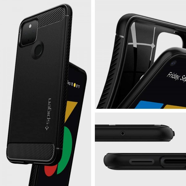 Inspired by car design, Rugged Armor® secures the Pixel 5 in a timeless and streamlined body. Its slim and lightweight frame brings daily drop defense while the matte textured back with carbon fiber detailing complete the whole look and feel. Suit up.