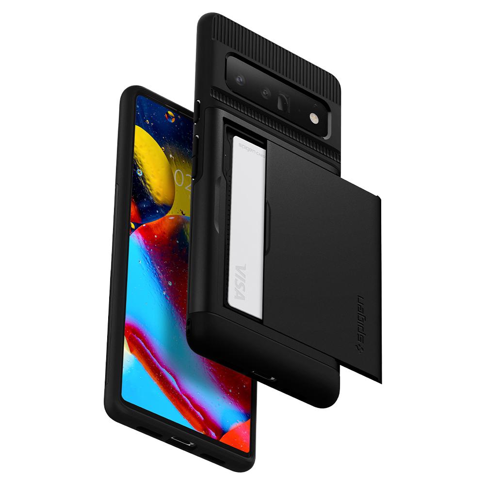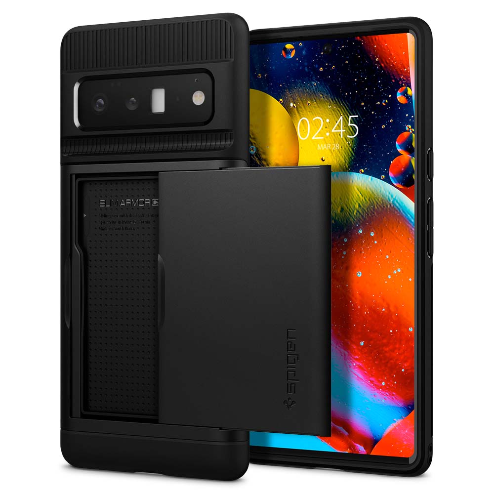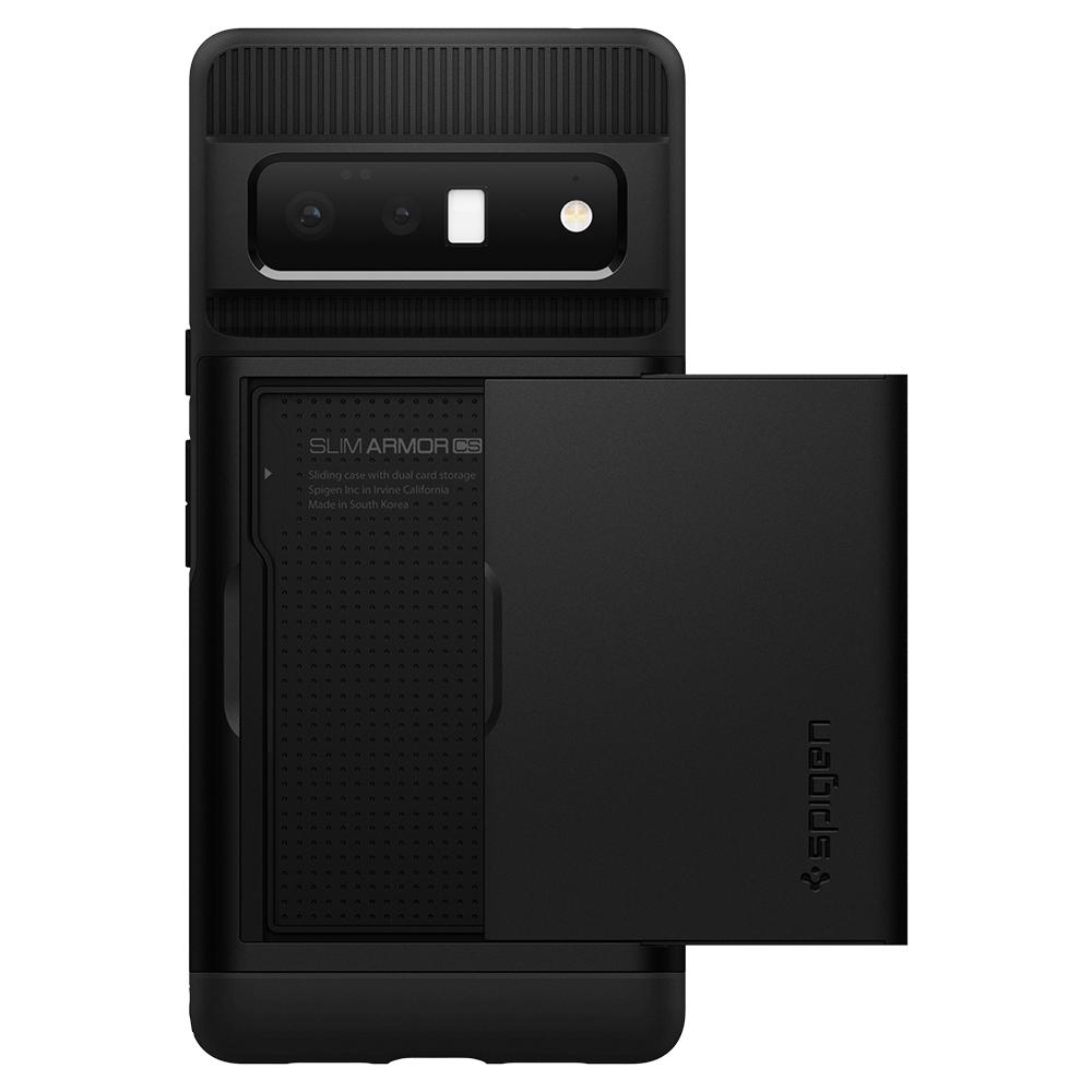 The Slim Armor® CS for the new Pixel 6 Pro combines extreme defense with on-the-go storage. Designed to be slim and pocket-friendly, the dual-layer structure is built with Air Cushion Technology® packed into every corner for bolstered drop-defense. The back slides open for easy access to a pocket of storage for a wad of cash or some cards. Even with all of the extra protection, the case remains thin and easy to grip. Encase your new Pixel 6 Pro in the practical yet rugged Slim Armor® CS.