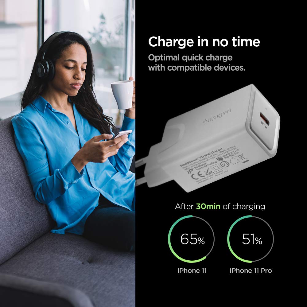 - [Especially for iOS Fast Charging] Supports 18W to 27W to fast charge iPhone and iPad with the use of USB-C to Lightning Cable (Spigen Essential USB-C to Lightning Cable is recommended)