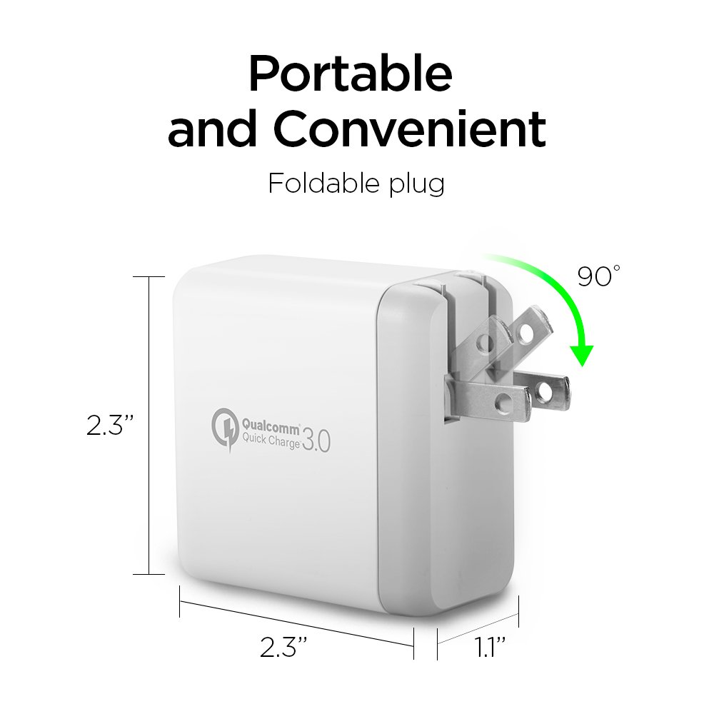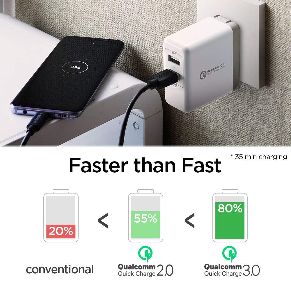 - QUALCOMM QUICK CHARGE 3.0 CERTIFIED - the fastest USB charging technology up to 4X faster (up to 80%) than conventional chargers - Most efficient charging point (up to 38% less power lose)