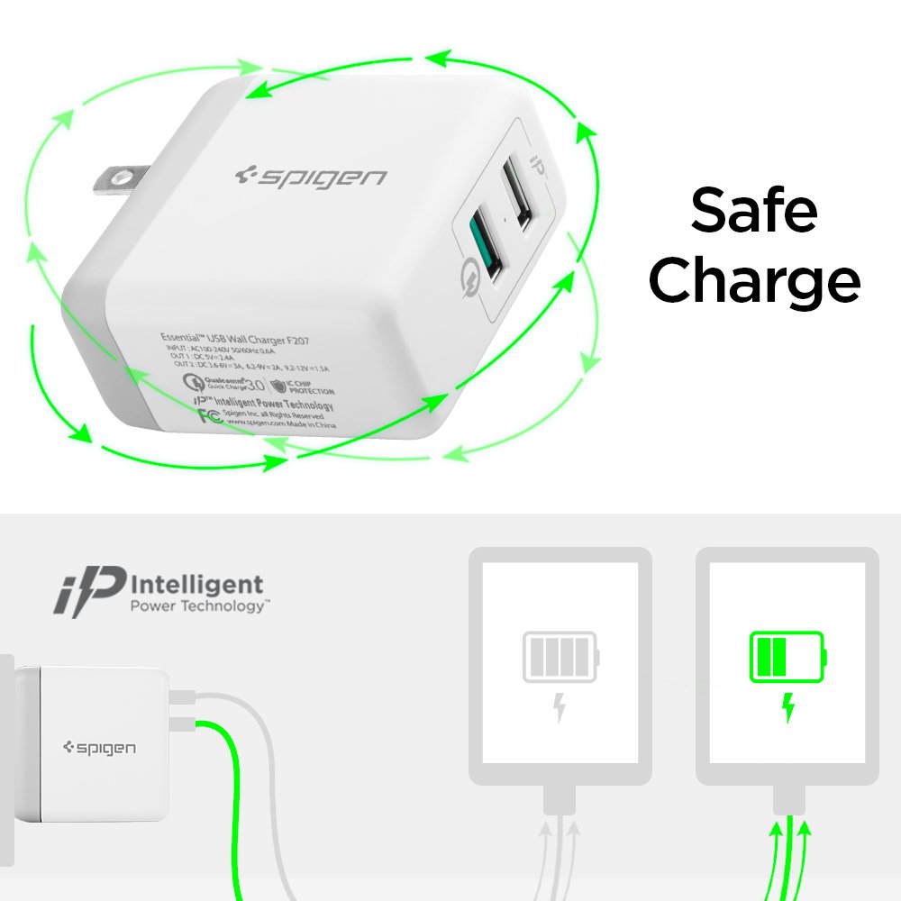 - Dual USB ports: QC 3.0 port charges up to 12V/1.5A, regular port 5V/2.4 amp. Input: AC 100 - 240V, 50/60 Hz 0.6A. Specification: Output 1: 5V/2.4 amp (iP technology) Output 2: 3.6-6V/3 amp, 6.2-9V/2 amp, 9.2-12V/1.5amp. Total output 30W