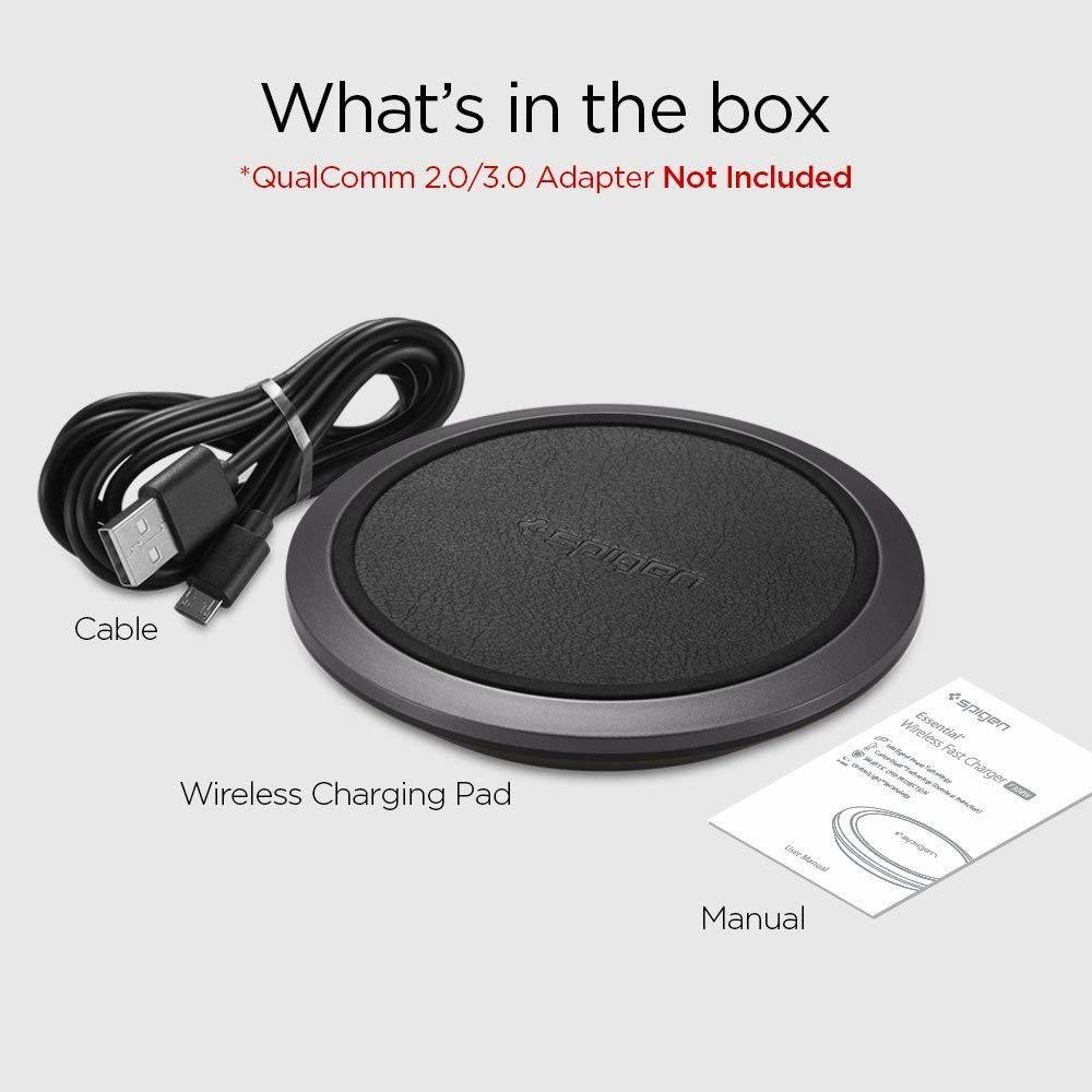 • Power adapter NOT included. Compatible with Qualcomm 2.0 / 3.0 power adapters such as Spigen Essential's F207 wall charger.